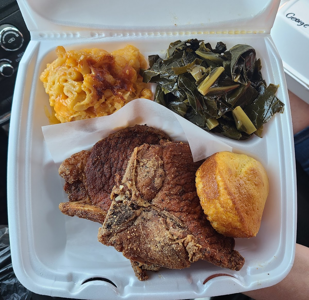 I found this place through Maps. A family operated Soul Food restaurant with some tasty offerings. I got the Fried Pork Chops with mac and cheese, collards, and a corn muffin. My wife had the Fried Catfish. Reasonable portions of everything. We waited a few minutes as all fried items are cooked upon order. Well worth the short wait. Great stop!